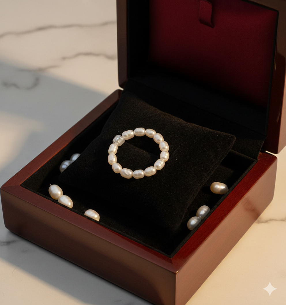 Der Ring Pure Essence besteht aus echten Süßwasserperlen, die von der Natur geformt sind. Keine Perle gleicht der anderen und somit ist jeder Ring ein Unikat.