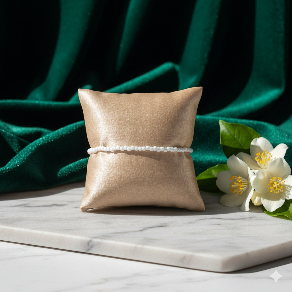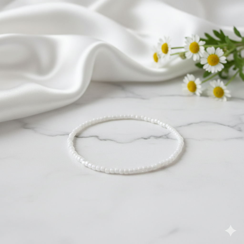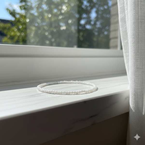 Stelle dein eigenes Armband aus natürlich geformten Glasperlen in einem Elfenbeinton her.