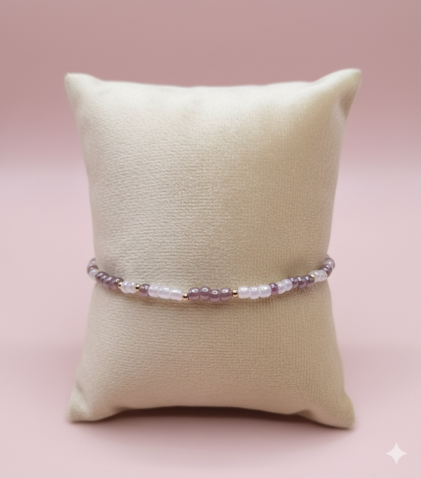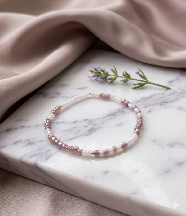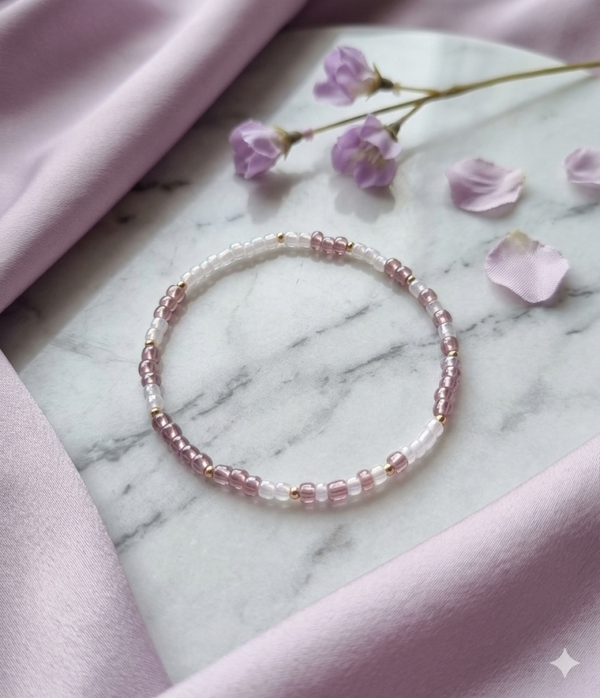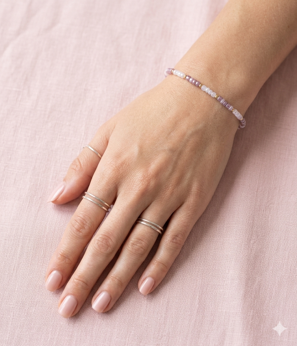 Hochwertige Rocailles-Glasperlen kombiniert mit langlebigen, hautschonenden Akzenten aus silbernem oder vergoldetem Edelstahl. Dank des reißfesten Elastikbands lässt sich das Armband komfortabel und ohne Verschluss anlegen.